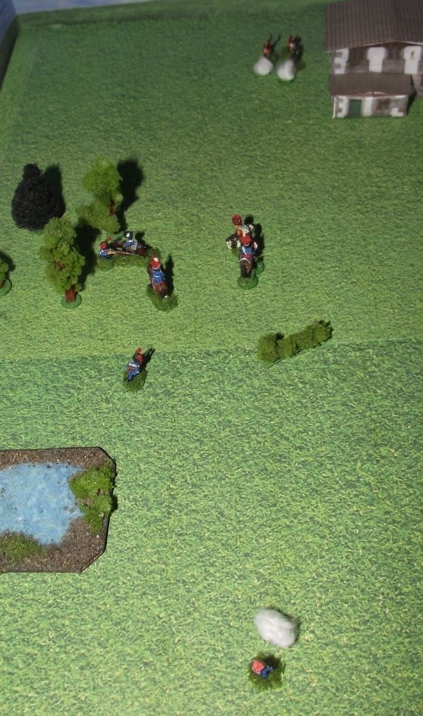 Light dragoon also moved, and found himself in the danger zone from the Voltigeur in the forest, so he charged there.