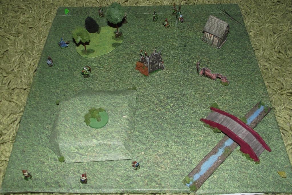 I started the game by sending wizard, tank and archer towards center, while the low cost models moved to take position on the bridge in order to defend access to the marker across the river.
